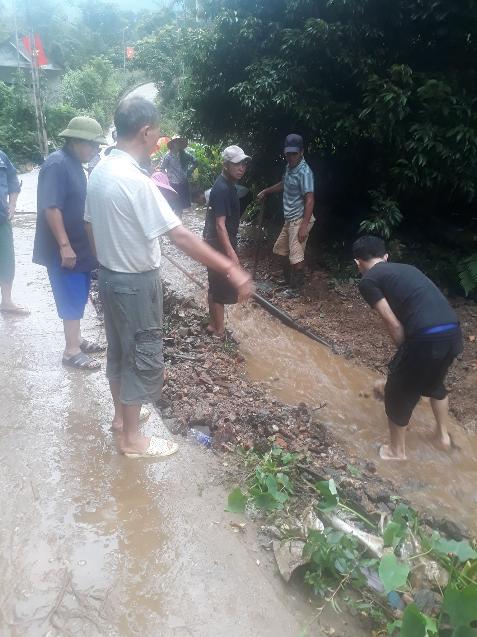 Tham gia lao động cùng thôn có đồng chí Hoàng Thị Thúy, đồng chí Hoàng Thị Nhung - Uỷ viên BCH Đảng bộ xã - Cán bộ phụ trách thôn và tham gia co hơn 200 hộ dân cùng tham gia lao động.